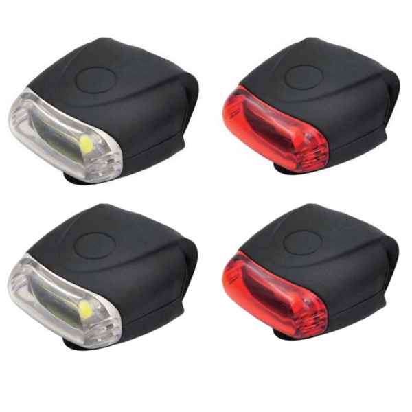 Benson LED fietslamp set – rood / wit – siliconen – waterdicht – 12 chips. Met deze Benson fietslamp set fiets je altijd veilig en zichtbaar, zowel in de stad als tijdens lange ritten. De set bestaat uit een wit voorlicht en een rood achterlicht, beide voorzien van 12 krachtige LED chips met COB-technologie voor helder en effici?nt licht. Dankzij de siliconen behuizing zijn de lampen waterdicht, schokbestendig en eenvoudig te monteren zonder gereedschap. Met drie standen (aan, knipperen, uit) kies je altijd de juiste verlichting voor jouw rit.