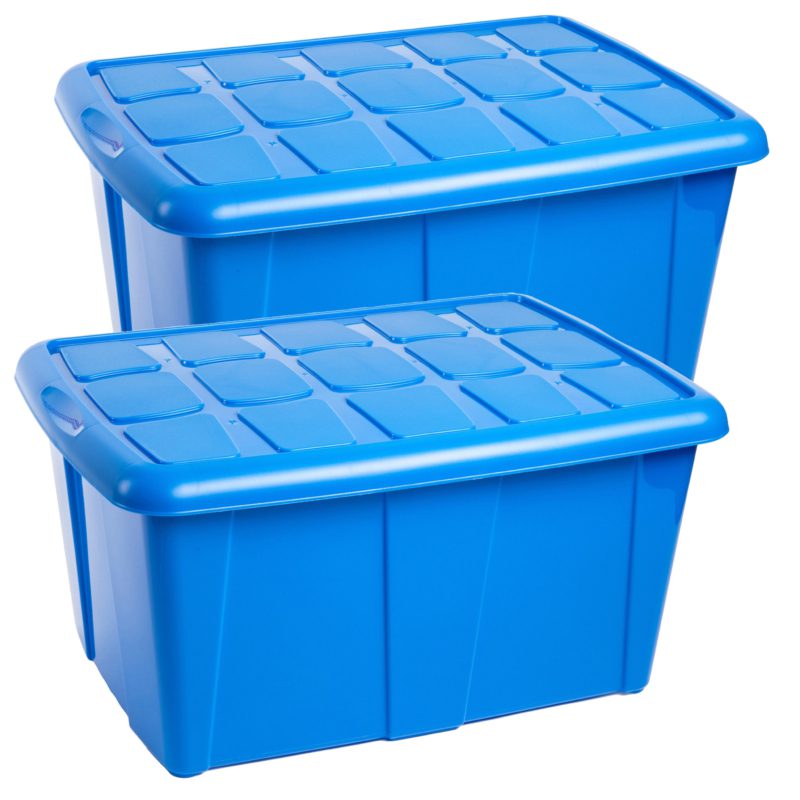 Opslagbox kist van 60 liter met deksel – 2x – Blauw – kunststof – 63 x 46 x 32 cm