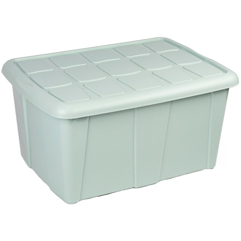 Opslagbox/kist met klem-deksel met inhoud van 60 liter. De opslagbox / opbergbox is in de kleur Mintgroen en is gemaakt van stevig kunststof. Afmetingen: 63 x 46 x 32 cm. Handige spullen/kleding/speelgoed/gereedschap/kerstartikelen bewaar box. Stapelbaar bij meerdere stuks.