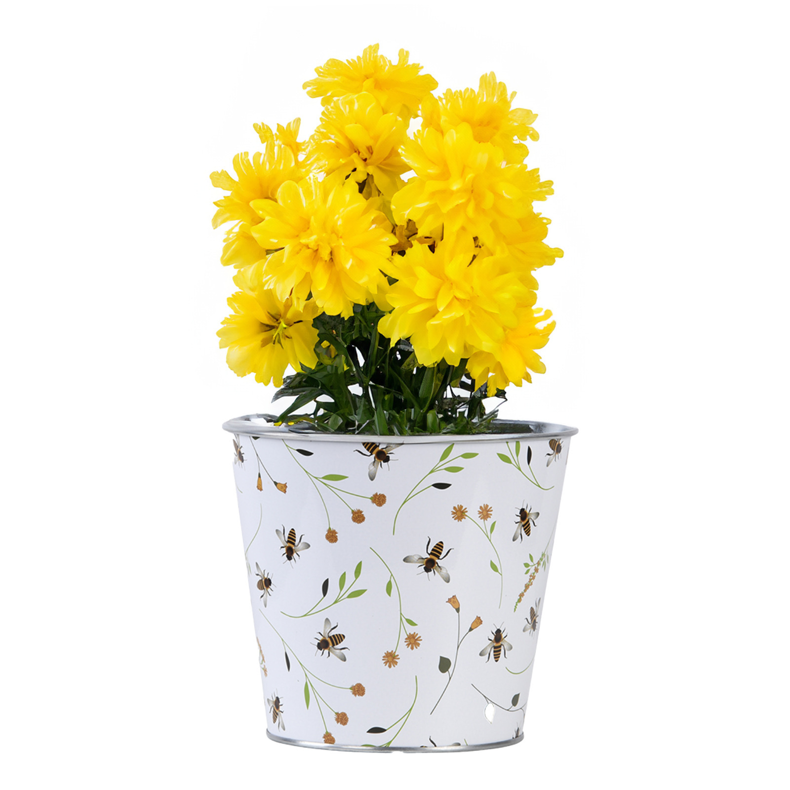 Plantenpot/bloempot emmer voor buiten – zink – Happy Bee – L15 x D16 X H14 cm