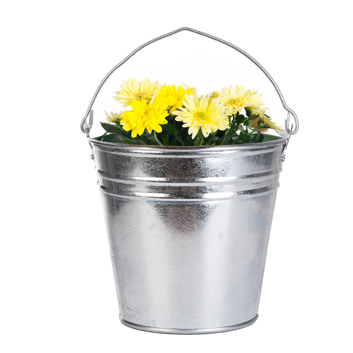 Plantenpot/bloempot emmer voor buiten – zink – zilver – D26 x H25 cm
